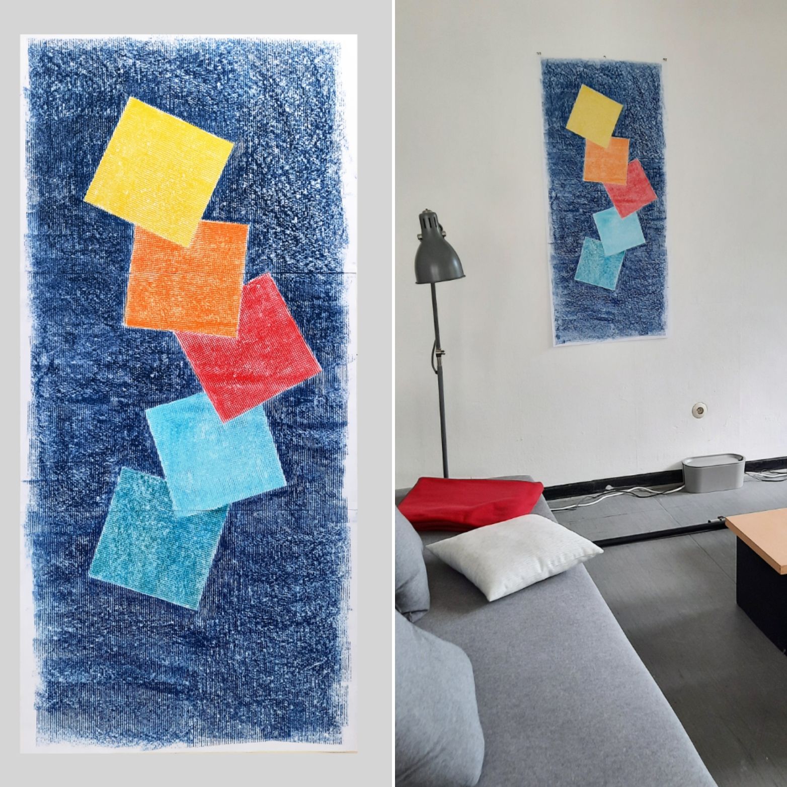 Die Auswahl der Farben und das Layout der Farbflächen sind ohne Vorzeichnung "einfach so" während des Malens entstanden.