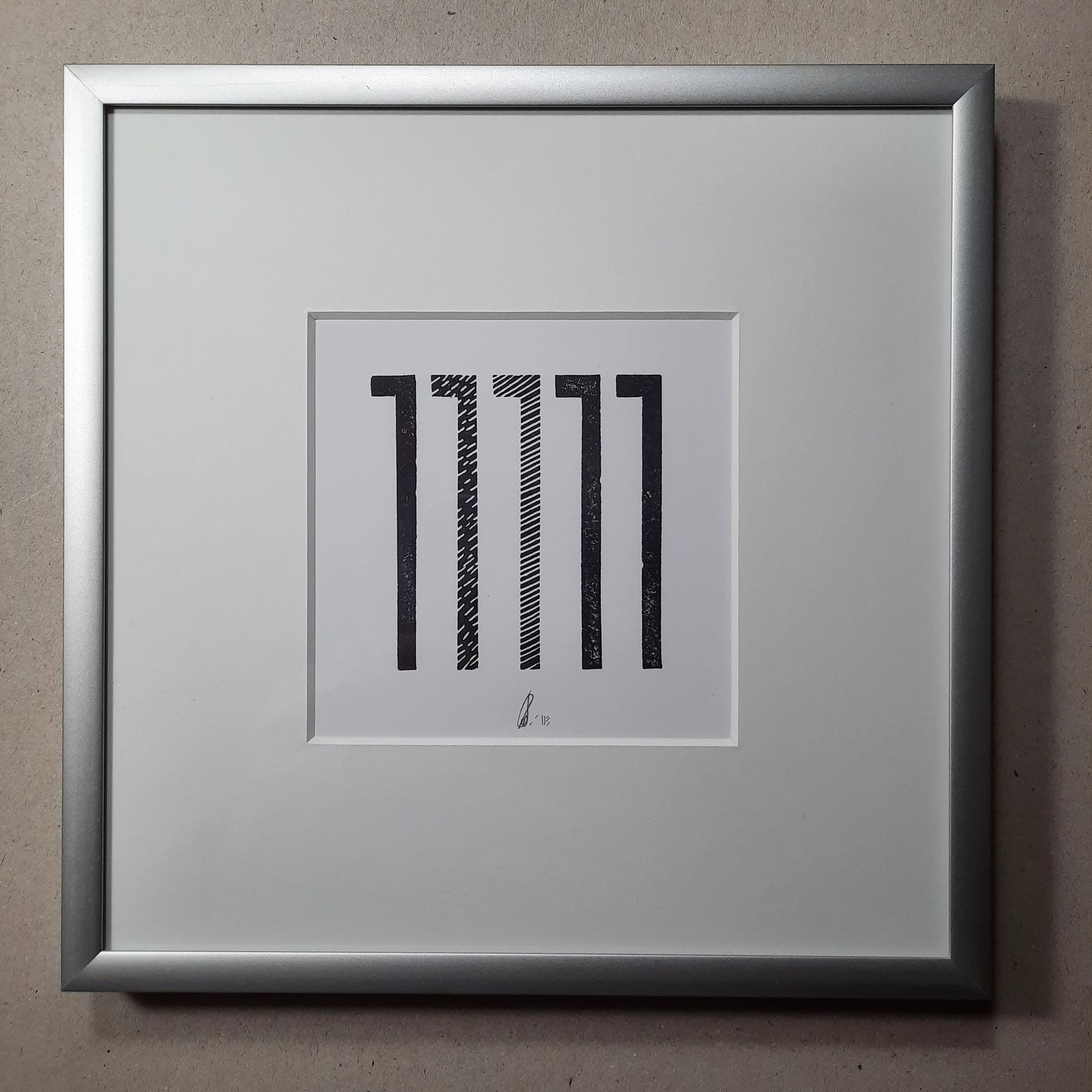 Das Motiv stammt von einem Logo, das ich für ein Architekturprojekt entworfen habe. Die Streifen sind die Schatten von schmalen Fassadenlamellen. Diese einfache Grafik eignet sich gut, um Schraffuren und Punktstrukturen auszuprobieren.